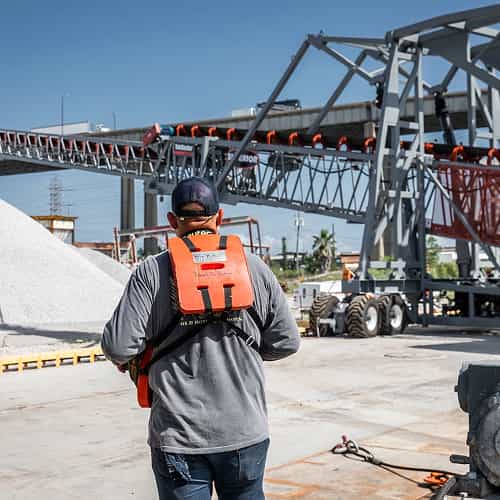This specially design TeleStacker® Conveyor helps Pontchartrain Materials Corporation in Louisiana to unload barges.