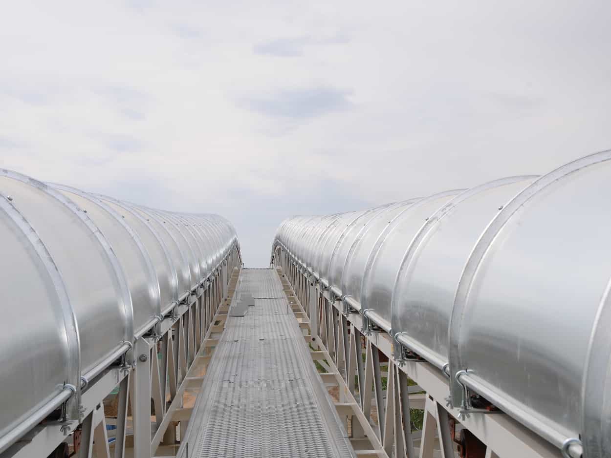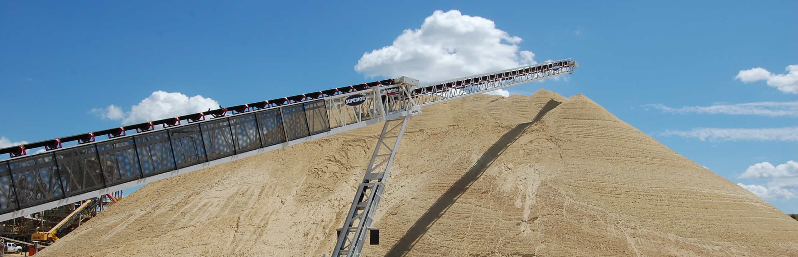 Hi-Crush hauls over 900 tons per hour of material from their wet plant to their dry using engineered overland conveyors. Part of their operation also involves using a TeleStacker® Conveyor for stacking finished products.