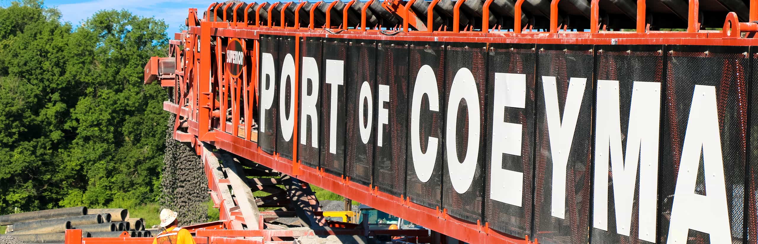 The Port of Coeymans, owned by Carver Companies, needed an efficient and cost-effective solution for handling and transporting large volumes of aggregate material for major construction projects, such as the high-profile New N.Y. Bridge project. The traditional method of using trucks, loaders, and material handlers to move aggregate from the dock to barges was labor-intensive, fuel-consuming, and costly.